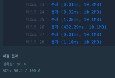 ์ฑ์ ๊ฒฐ๊ณผ, ์๊ฐ ์ด๊ณผ๋ก ํ ๊ฐ์ ํ ์คํธ๋ฅผ ํต๊ณผํ์ง ๋ชปํ๋ค.