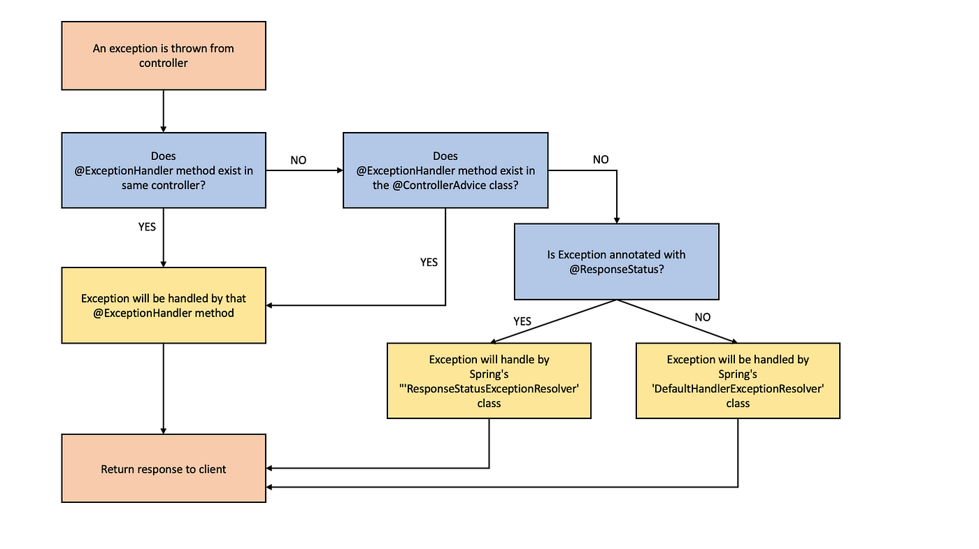 - 설정되어 있지 않다면 DefaultHandlerExceptionResolver가 기본적으로 500 Internal Server Error 상태코드로 응답을 생성한다.