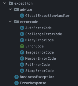 🙋♀️ 하나의 enum 클래스에서 모든 도메인에 필요한 ErrorCode를 정의해도 무방하지만, 각 도메인에 대한 에러 상황이 늘어날수록 가독성이 좋지 않음을 느꼈기 때문에 도메인별 ErrorCode를 분리하기로 했다.