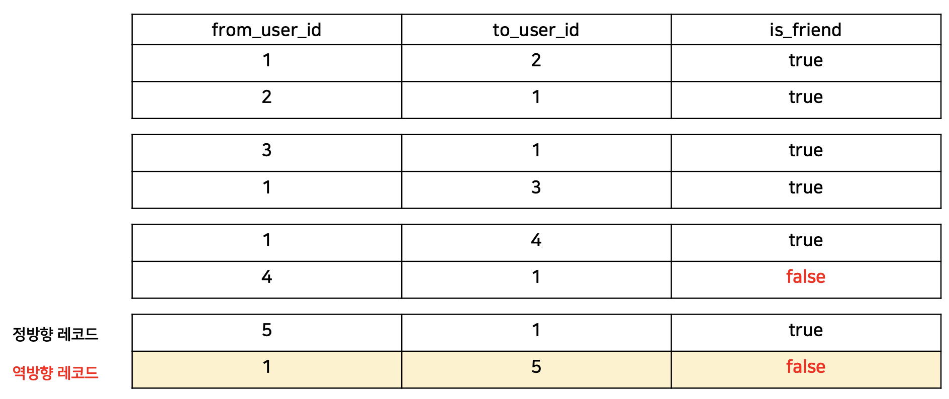 (역방향 레코드를 이용하는 이유는, 정방향 레코드의 `is_friend`는 항상 `true`이기 때문이다.)