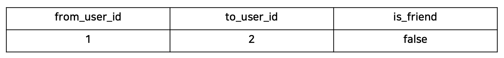내가 1번 사용자라고 할 때, `from_user_id`가 1 이면서 `is_friend`가 false 인 행의 `to_user_id`를 조회하면 된다.