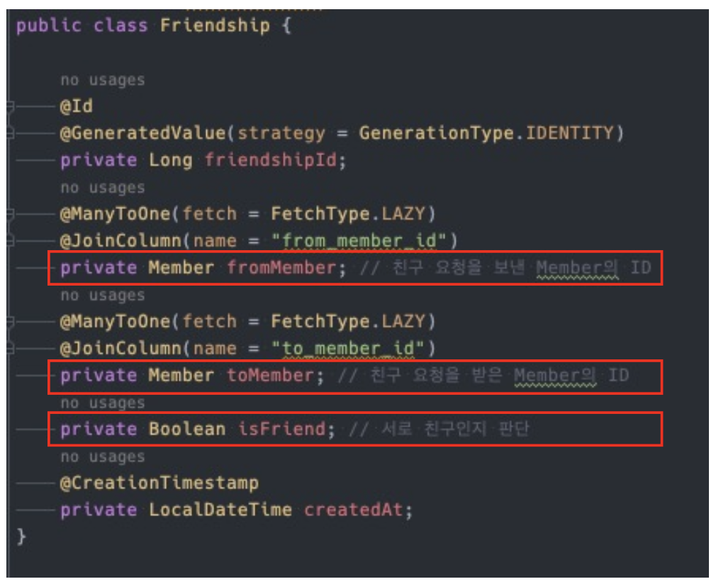 이때, `fromMember`, `toMember`, `isFriend` 필드를 주목하면 된다.