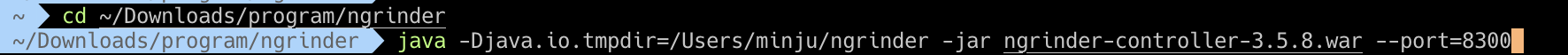 $ java -Djava.io.tmpdir=/Users/minju/ngrinder -jar ngrinder-controller-3.5.8.war --port=8300
