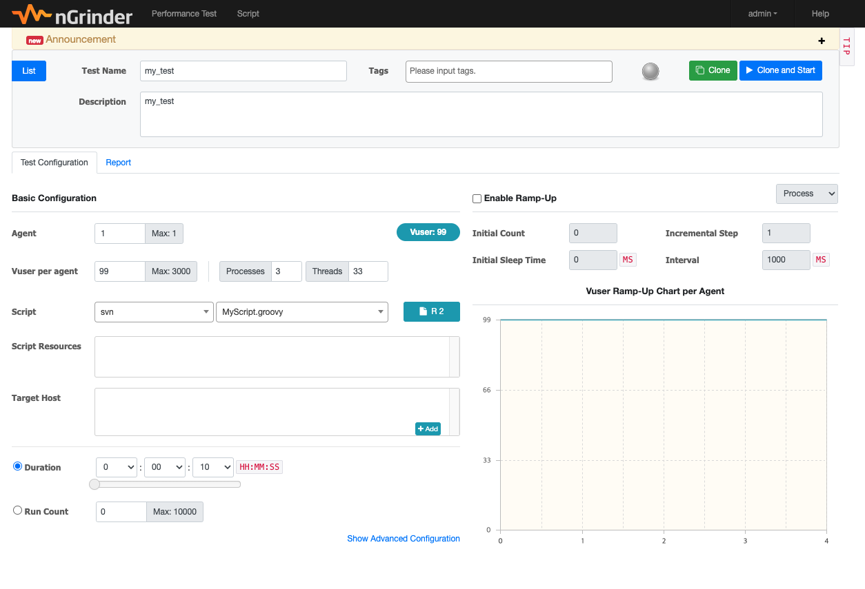 - Duration: 얼마나 오래 테스트가 지속될지 정하는 것