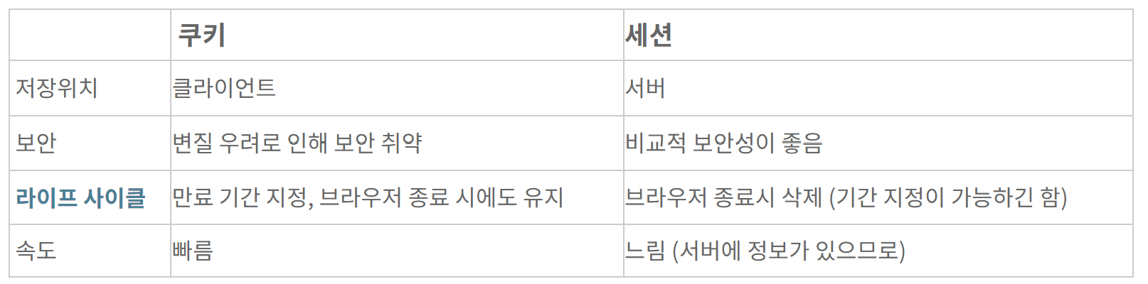 ์ฌ์ฉ์์ ๋ํ ์ ๋ณด๋ฅผ ์๋ฒ์ ๋๊ธฐ ๋๋ฌธ์ ์ฟ ํค๋ณด๋ค ๋ณด์์ ์ข์ง๋ง, ์ฌ์ฉ์๊ฐ ๋ง์์ง์๋ก ์๋ฒ ๋ฉ๋ชจ๋ฆฌ๋ฅผ ๋ง์ด ์ฐจ์งํ๋ค.