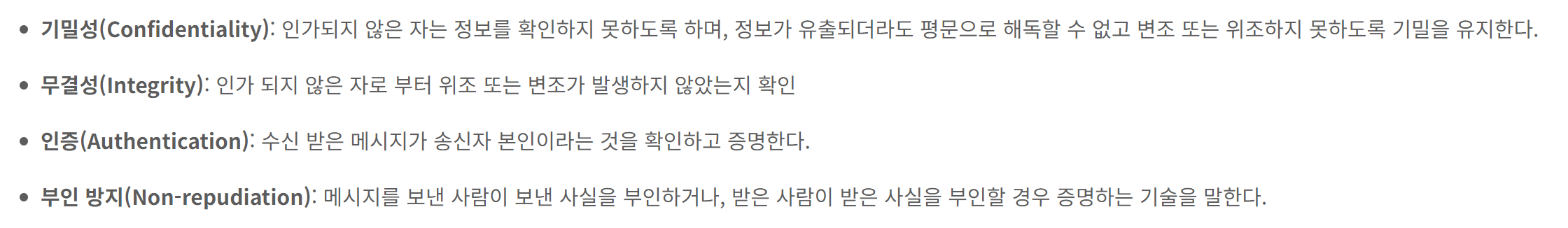 ๊ณต๊ฐํค ์๊ณ ๋ฆฌ์ฆ์ ๊ธฐ๋ฐ์ฑ/์ธ์ฆ/๋ถ์ธ๋ฐฉ์ง ๊ธฐ๋ฅ์ ์ ๊ณตํ๋ค.