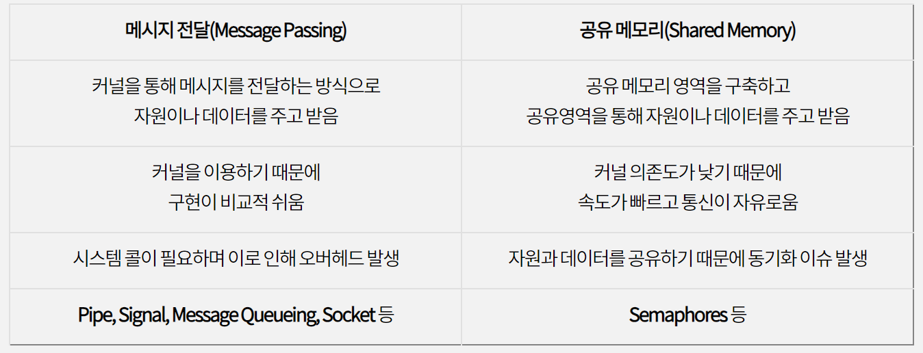 ํ ํ๋ก์ธ์ค๊ฐ ๋ค๋ฅธ ํ๋ก์ธ์ค์ ์์์ ์ ๊ทผํ๋ ค๋ฉด ํ๋ก์ธ์ค ๊ฐ ํต์ (IPC)์ ์ฌ์ฉํด์ผ ํ๋ค. (์. ํ์ดํ, ํ์ผ, ์์ผ ๋ฑ..)