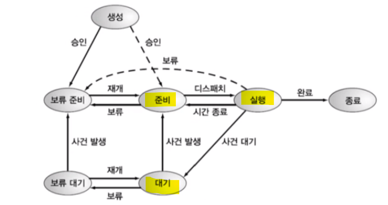 - process state: ํ๋ก์ธ์ค ์ํ (create, ready, running, waiting, terminated)