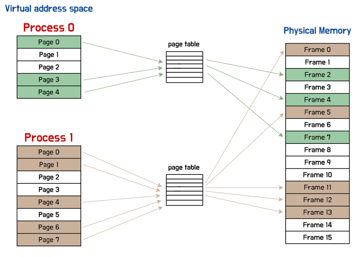 forkํ ๋ ๋ ๊ฐ(parent, child)์ VA๊ฐ ์๋ก ๊ฐ์ PA๋ฅผ ๊ฐ๋ฆฌํค๋๋ก PT(Page Table)๋ง ๋ง๋ค์ด์ฃผ๋ฉด, memory copy๋ฅผ ํผํ ์ ์๋ค.