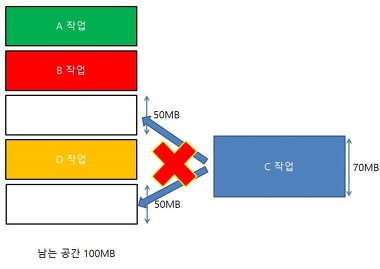 ์ด ์ฐจ์งํ๊ณ ๋จ์ ์์ญ์ ์ฌ์ฉํ ์ ์๋๋ฐ, ์ด ๋ถ๋ถ์ internal fragmentation์ด๋ผ๊ณ ํจ.