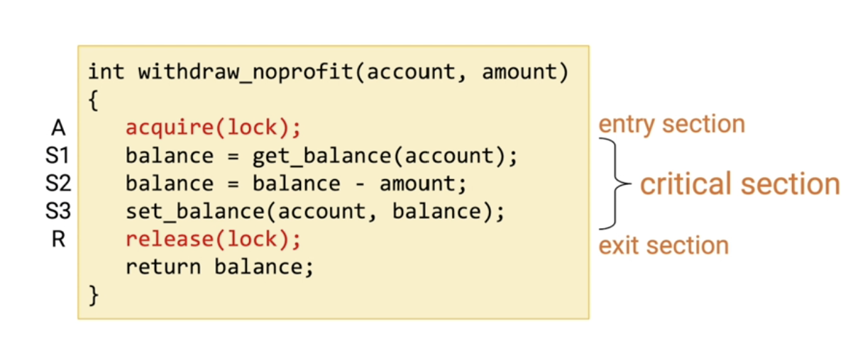 Mutual Exclusionํ ์ํ๋ฅผ ๋ง๋ค๊ธฐ ์ํด ์ฌ์ฉํ๋ ๊ฒ์ด Lock์ด๋ค.