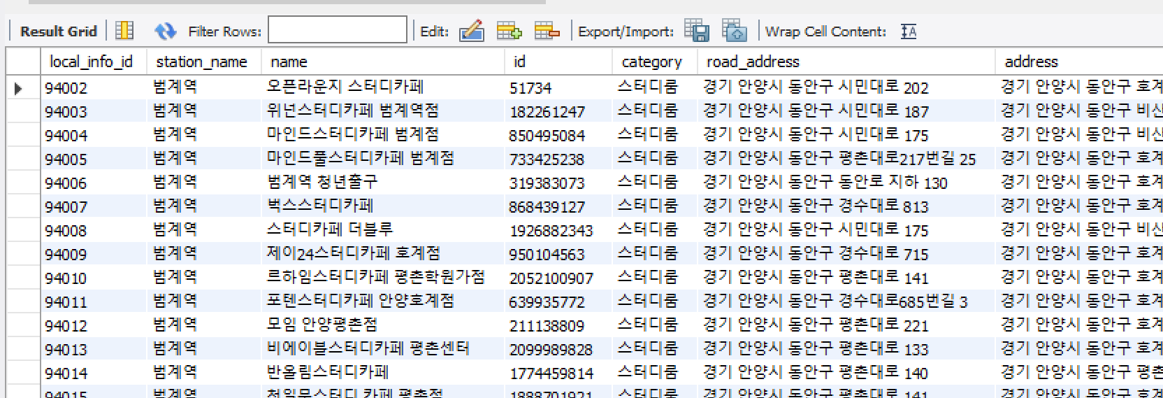 그래서 카카오에서 받아오는 데이터의 양을 줄여봤다. 기존 반경 1000미터에서 반경 100미터로