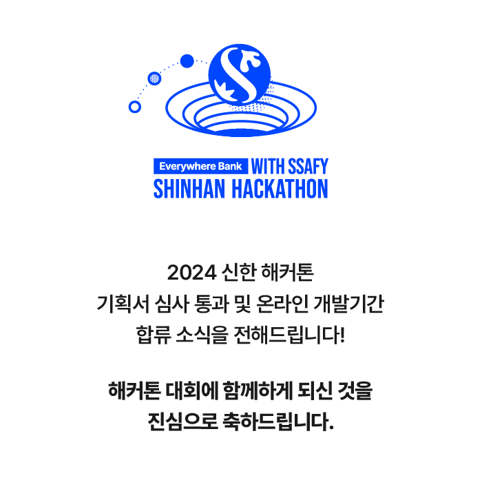 ์ ํ์ํ๊ณผ SSAFY๊ฐ ์ ๊ณตํ๋ ๊ธ์ต API๋ฅผ ๋น๋กฏํ ๋ค์ํ ๋์งํธ ๊ธฐ์ ์ ํ์ฉํด ์๋ก์ด ๊ธ์ต ์๋น์ค๋ฅผ ๊ฐ๋ฐํ๊ณ ๋ฐํํ๋ ๋ํ์ ๋๋ค. ์ผ๋ฐ ํด์ปคํค๊ณผ ๋ฌ๋ฆฌ, ํน๋ณํ SSAFY๋ง์ ์ํด ๊ธฐํ๋์๋ค๊ณ ํฉ๋๋ค!